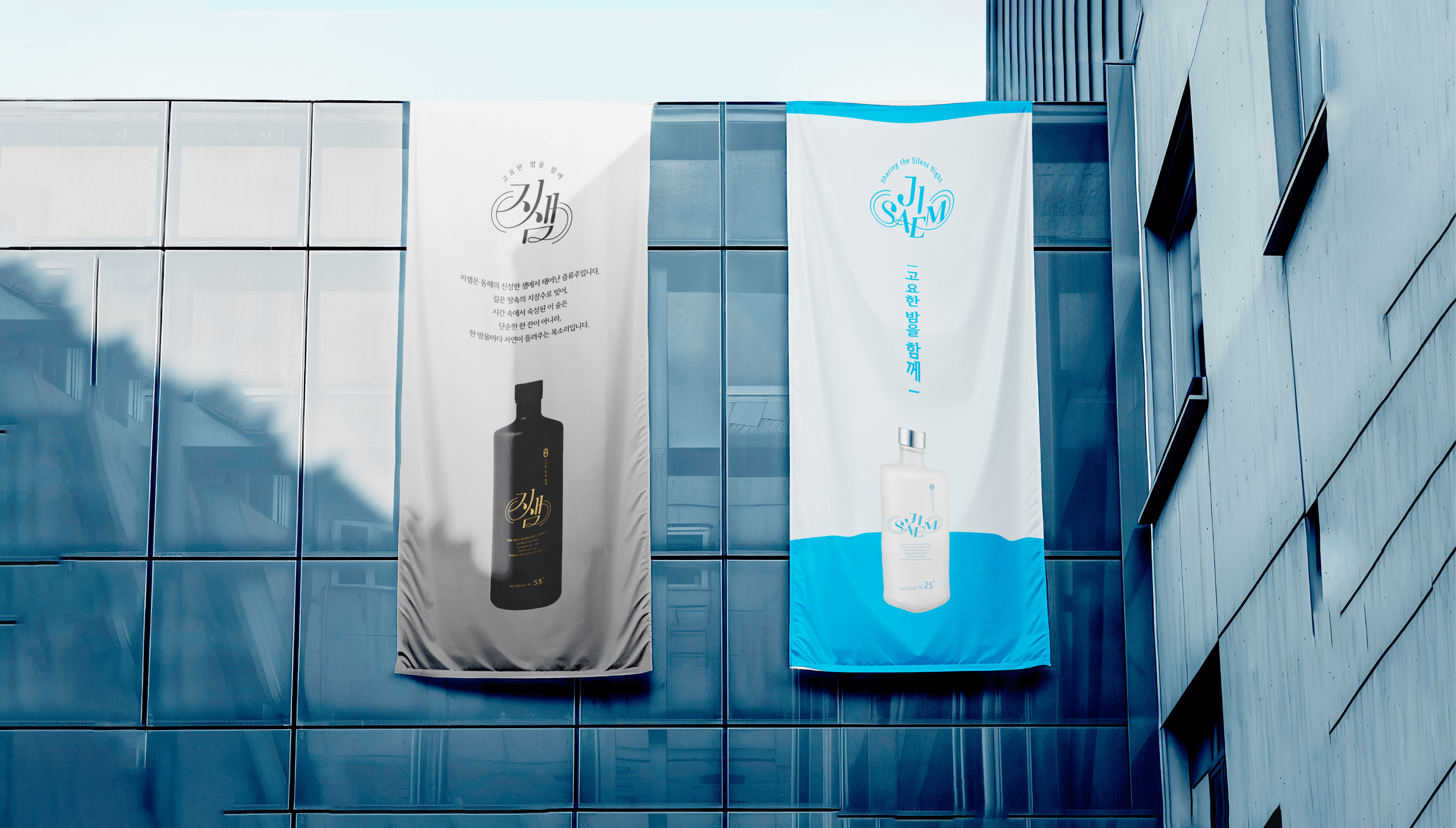The logotype expresses the flow of water and the cyclical nature of the distillation process through a curved structure. Both the Korean and English logos were developed using the same formative principles to maintain a consistent brand impression.